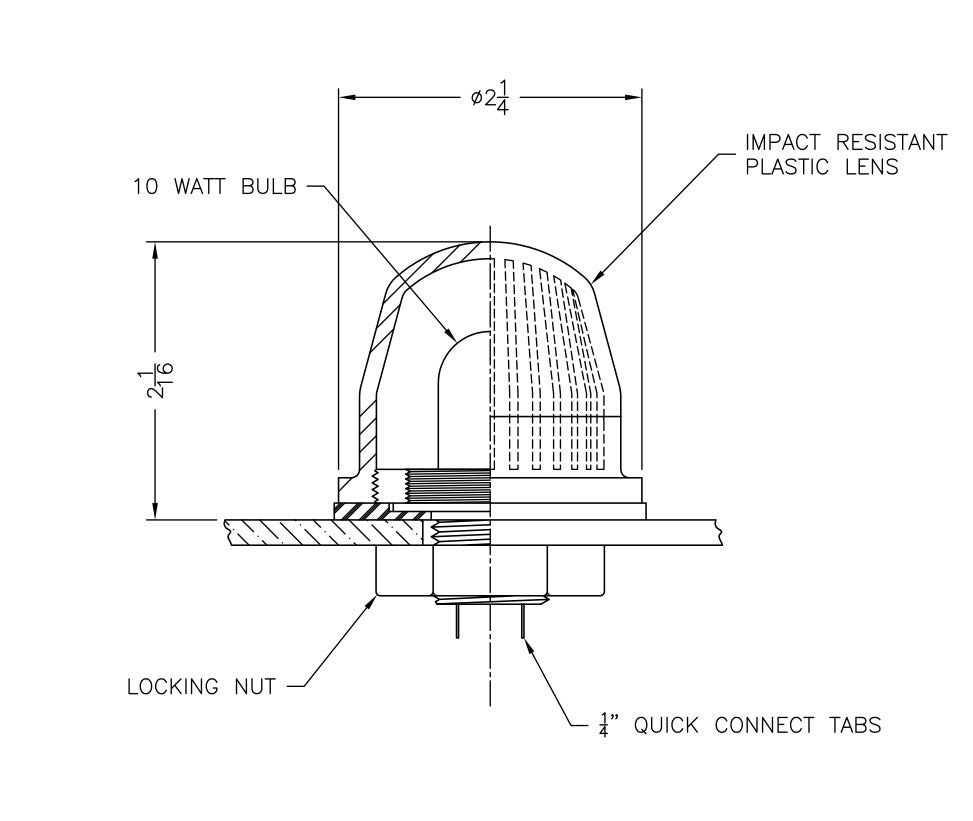 - 120v, 10w Bulb (12/24v or 12v LED Available as Special Order)