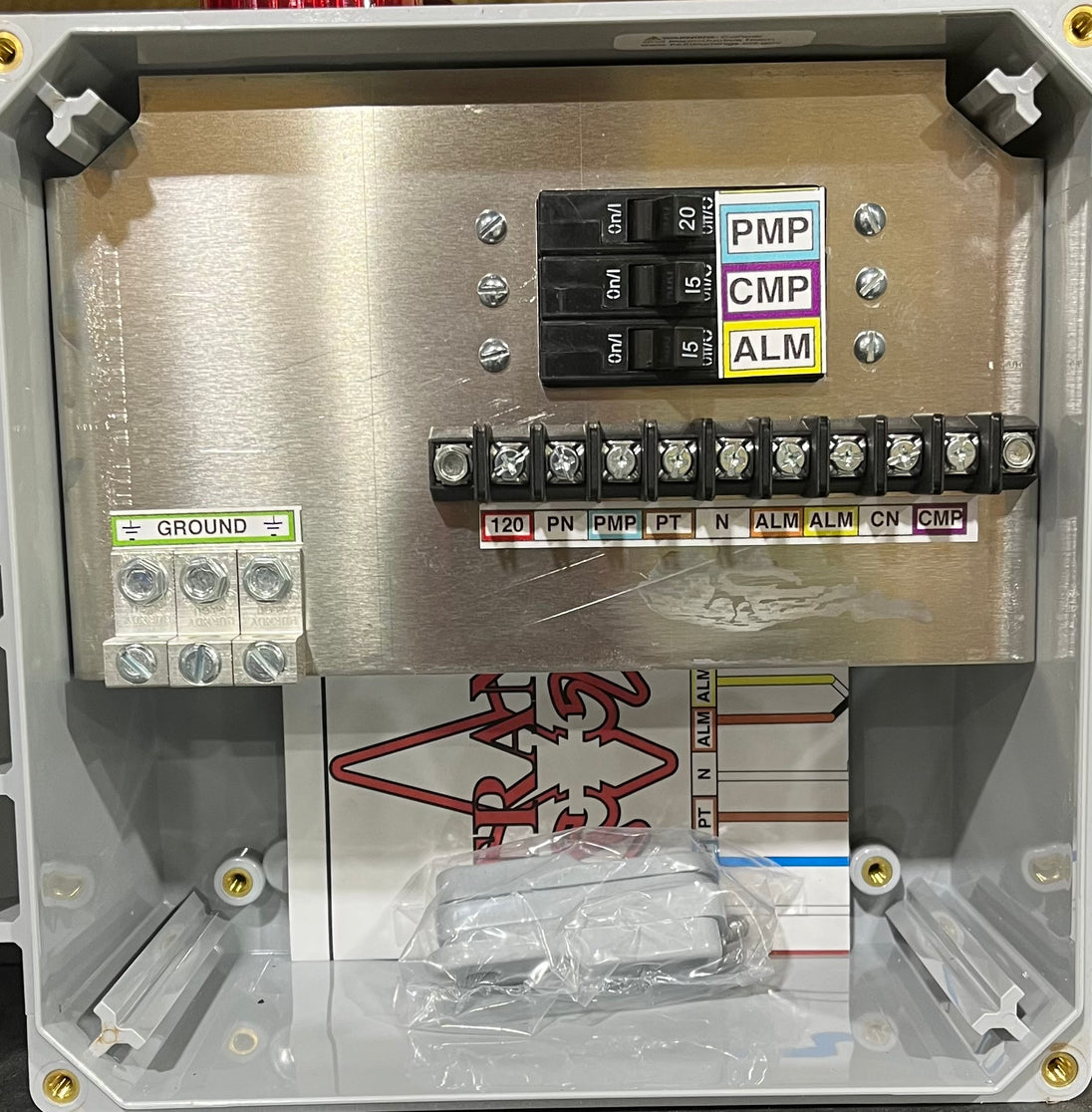 3 Circuit Breakers (20A Pump, 15A Compressor, 15A Alarm)