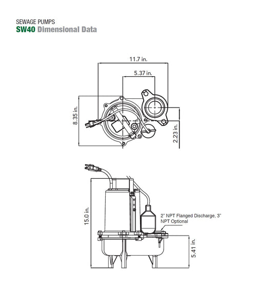 4/10 horsepower Heavy-duty, vortex cast iron impeller and motor housing Single Mechanical Carbon Ceramic Seal 2″ NPT Discharge 2″ Solids Handling 20 Ft. Cord Length Please Note: When replacing a pump, the pump float must also be...Regular price $450.00Regular price $450.00
