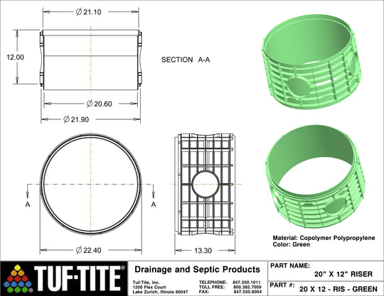 Tuf Tite 20" x 12" riser is used with the Tuf-Tite 20" septic risers. The Tuf-Tite Risers are made of with the high strength HDPE and are widely regarded as the best septic risers on the market today.Regular price $87.00Regular price $87.00 -