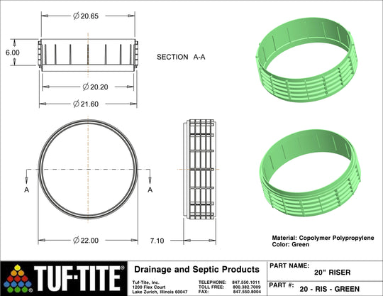Tuf Tite 20" x 6" riser is used with the Tuf-Tite 20" septic risers. The Tuf-Tite Risers are made of with the high strength HDPE and are widely regarded as the best septic risers on the market today.Regular price $55.00Regular price $55.00 -